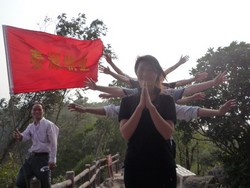 早上,陽光明媚,大家興致勃勃,沿著茂密山林間的石階,逐級攀登。一路歡歌笑語,其樂融融,不知不覺已到山頂。
