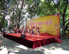 演出在《國歌》聲中拉開序幕,精彩紛呈的節(jié)目讓人目不暇接。舞蹈《下課了》烘托出節(jié)日的喜慶祥和,讓觀眾眼前一亮;《樓棟長歌舞》使現(xiàn)場掌聲、歡呼聲、喝彩聲此起彼伏,一浪高過一浪;部分社區(qū)居民參與了獨(dú)唱、交誼舞、新老歌曲演唱等節(jié)目。最后全場觀眾一起高唱《大中國》將演出推向高潮,圓滿落下帷幕!