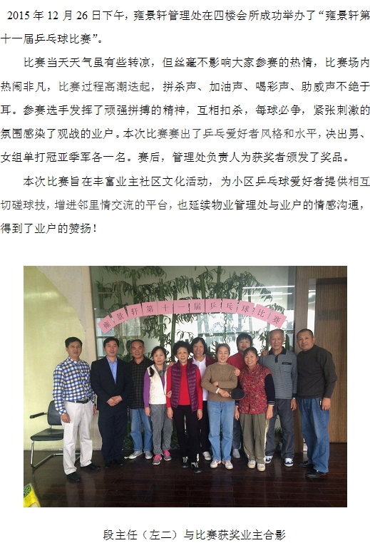 雍景軒舉行第十一屆乒乓球比賽