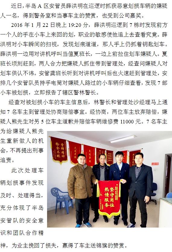 半島A區(qū)安管隊(duì)抓獲一名惡意劃損車輛的嫌疑人