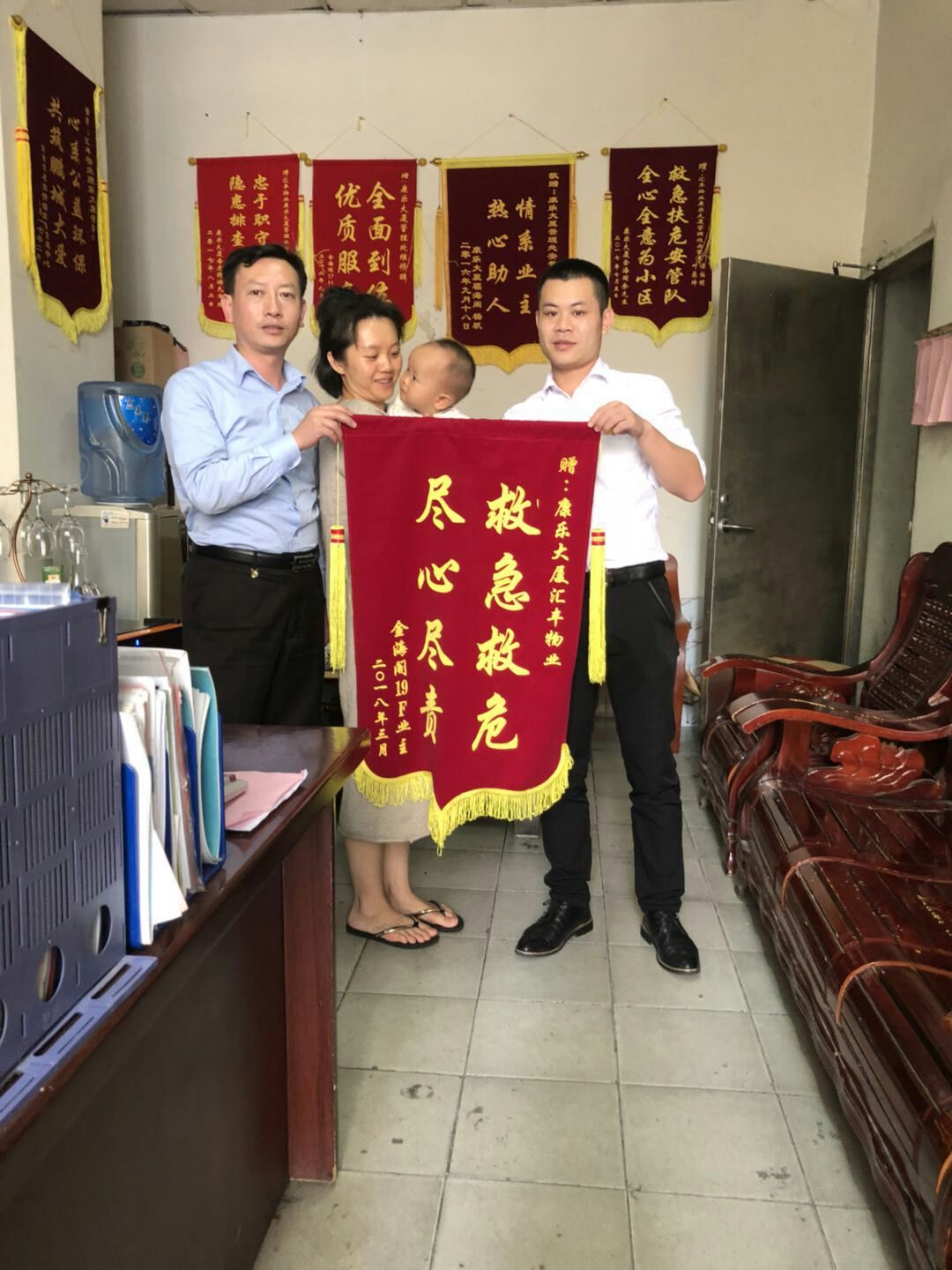 陳女士對(duì)安管員“奮不顧身、救急救危”的精神甚是感激,制作錦旗一面送管理處致謝。