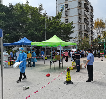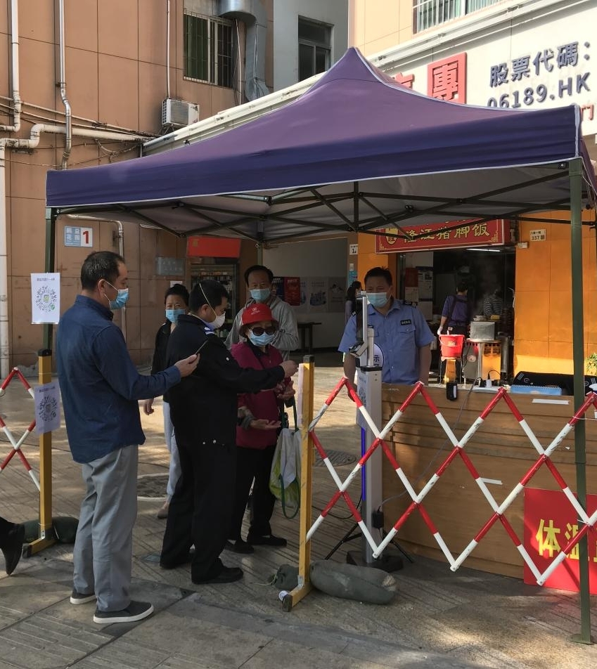 新冠肺炎確診病例近日在深圳增多,各小區(qū)的喇叭不知疲倦地呼喊“請(qǐng)到指定地點(diǎn)核酸檢測(cè)”,門崗都站立著戴口罩、穿防護(hù)服的物業(yè)人,提示“請(qǐng)出示健康碼”,這是深圳物業(yè)人的抗“景象