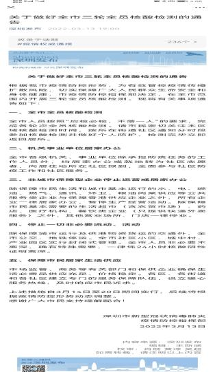 3月13日,深圳市新型冠狀病毒肺炎疫情防控指揮部發(fā)布了《關(guān)于做好全市三輪全員核酸檢測(cè)的通告》。根據(jù)通告要求,全市公交、地鐵停運(yùn);非城市保障型企業(yè)停止運(yùn)營(yíng)或居家辦公;全市實(shí)行封閉式管理......。