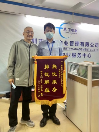 2022年11月24日,海欣閣20A業(yè)主給匯景花園物業(yè)服務(wù)中心送來(lái)一面錦旗,以感謝客服管家沈繼賢。