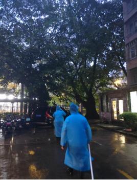 天亮早起的業(yè)戶,看到保安仍在清理樹枝,沖洗地面,豎起拇指對他們說:“你們辛苦了,好樣的!”