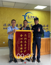 周先生一家為感激安管隊的王磊,送錦旗一面、慰問金500元到服務(wù)中心。“盡職盡責(zé)守護(hù),全心全意服務(wù)”,正是周先生贊揚(yáng)萬豪御景苑安管隊員寫照。