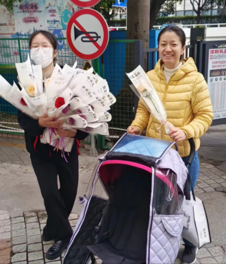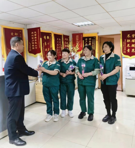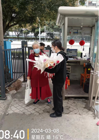 鳴翠谷小區(qū)趙主任為女員工送鮮花,感謝她們“三八”節(jié)日仍堅(jiān)守崗位,為小區(qū)的物業(yè)服務(wù)辛勤付出。